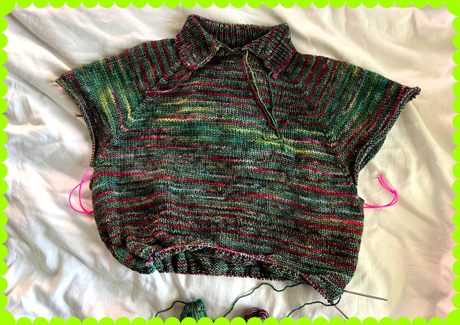 Firstly, I have been working on this Stripe Overload Polo for several months now. It went into my Time Out pile after I mis-measured the length and basically made a sweater-bra. It was such a rookie mistake that it took a while to bring myself to rip back the ribbing and lengthen it.