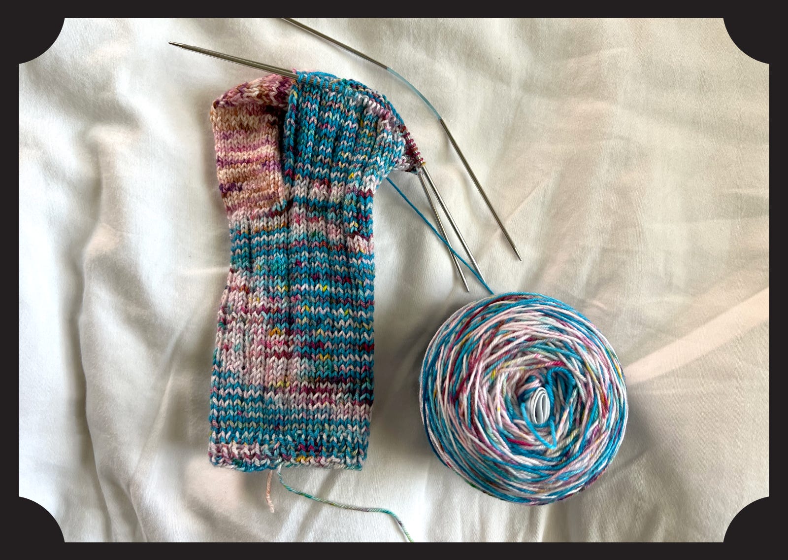 Of course I have a pair of socks going as well. These are an on-the-go project though so they will take a while and I am okay with that!! The pattern is the free Basic Ribbed Socks pattern by Kate Atherley.